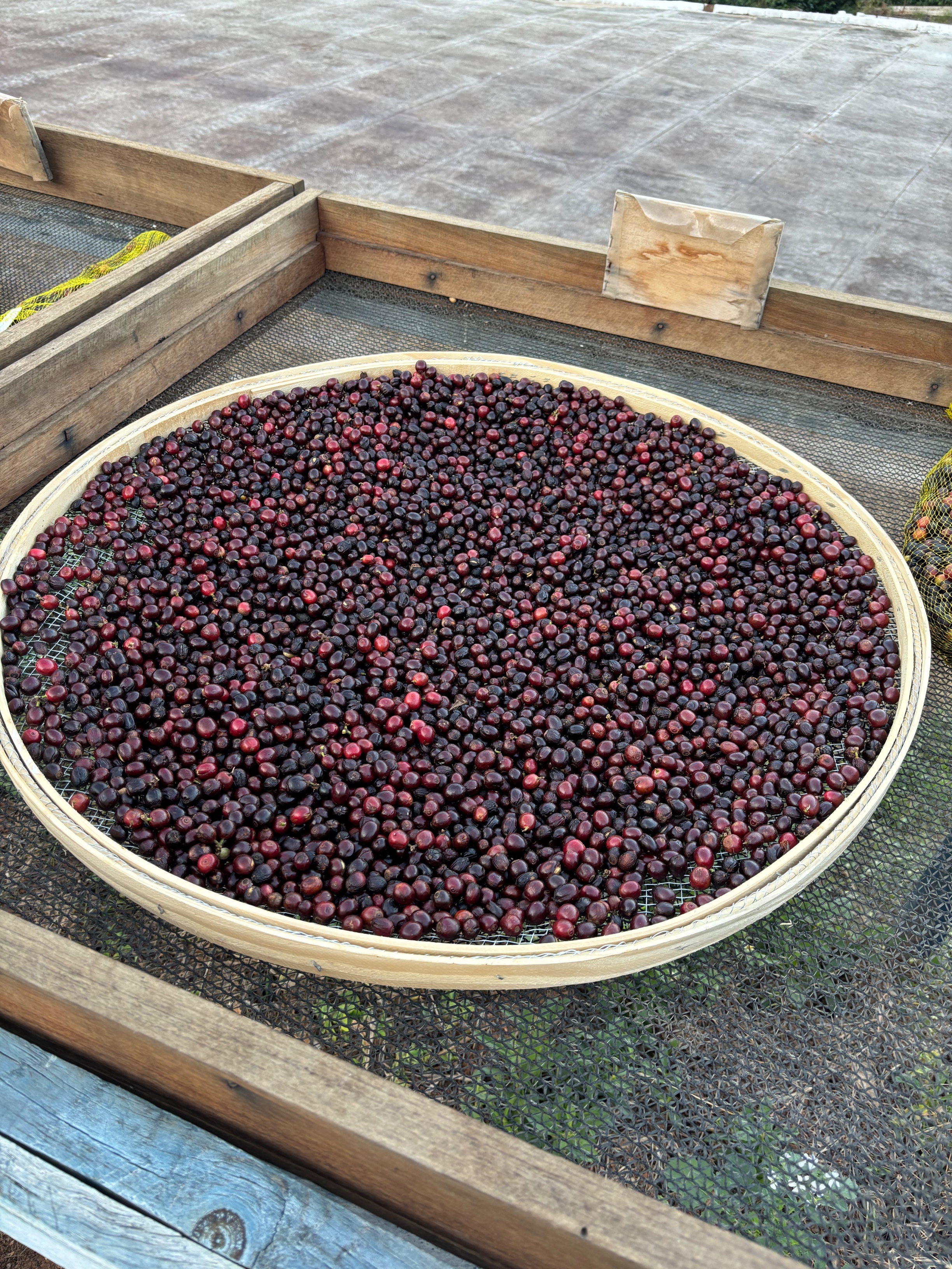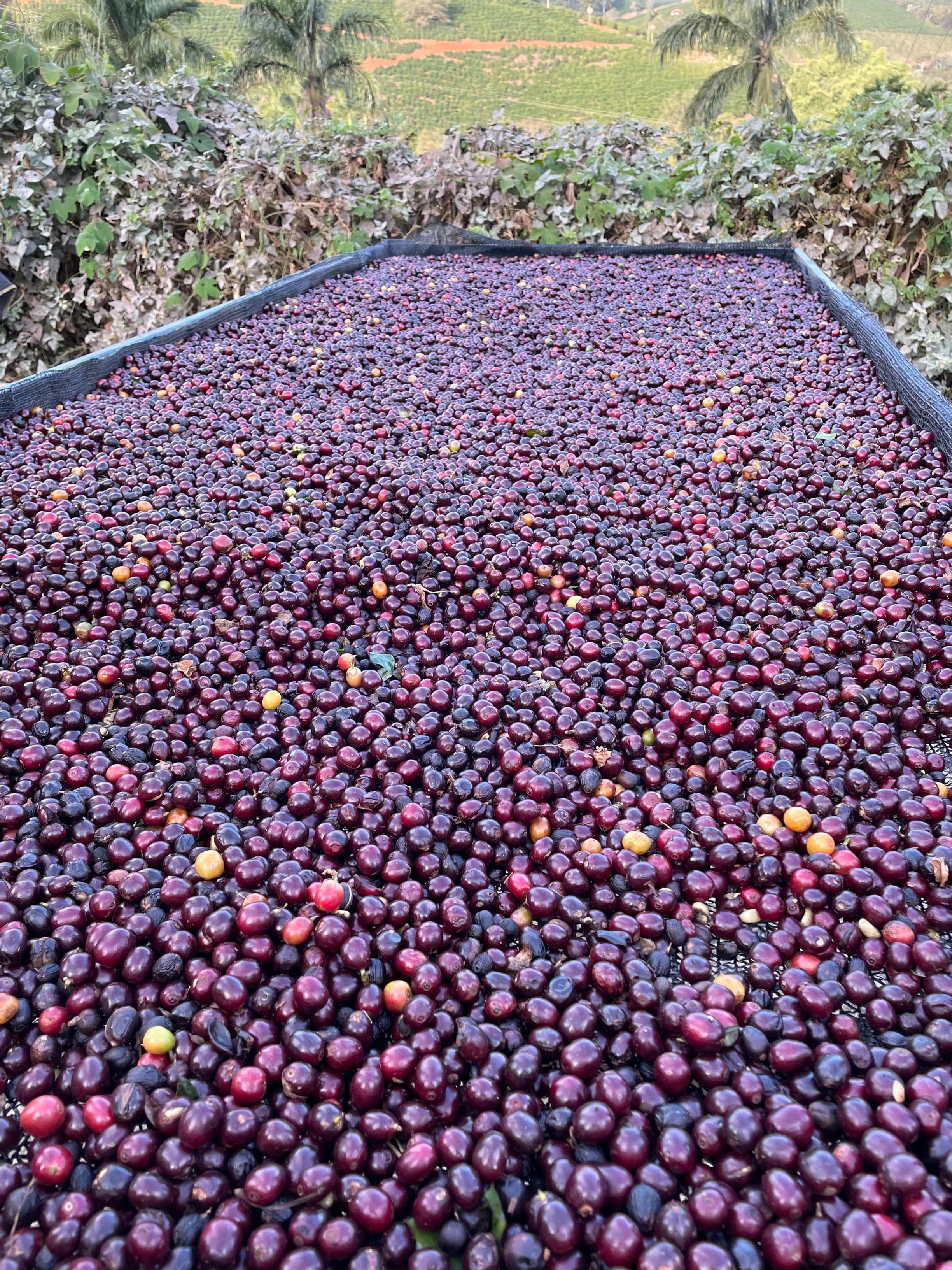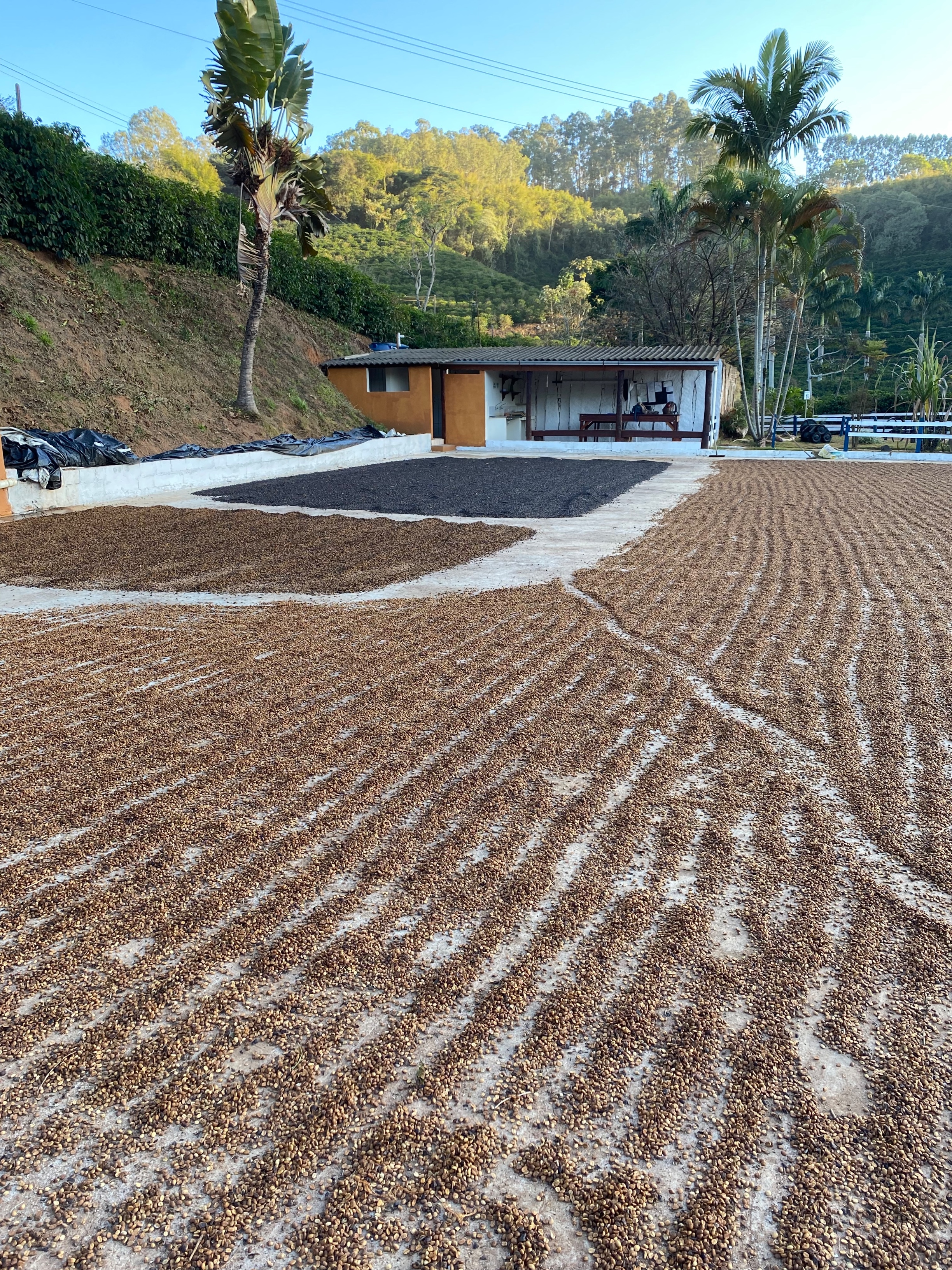 The farm cultivates 102 hectares of Arabica coffee of the varieties Mundo Novo, Catuaí, Rubi, Icatu, Bourbon, Arara, Paraíso, and Acauã, at altitudes ranging from 950 to 1,150 meters. The mountainous microclimate favors the development of exceptional beans, while the steep terrain preserves the tradition of manual harvesting, strengthening social impact and local job creation. Since 1992, the coffee has been carefully pulped and processed, with cherries separated by ripeness stage and prepared individually to ensure excellence in the final result.